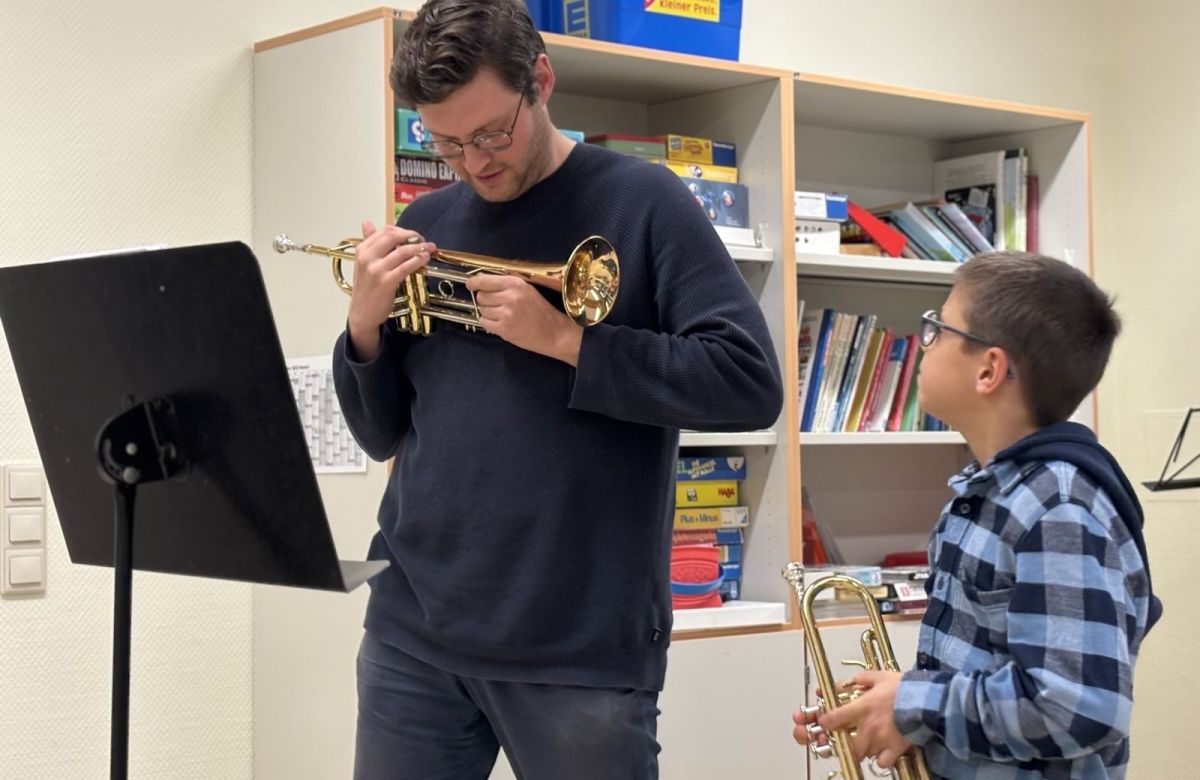 Wie bei seinem Schüler Ekim. „Er hat ein Riesentalent mitgebracht“, konstatiert der 35-jährige Baden-Württemberger. „Und hat sofort einen schönen Ton auf dem Instrument erzeugen können.“ Sein Vater Atilin Seymen, der diesmal beim Unterricht anwesend ist, erinnert sich, dass Ekim bereits mit viereinhalb Jahren vom Trompetenspiel schwärmte. Und deshalb entgegen der allgemeinen Empfehlung bereits vor seinem sechsten Lebensjahr mit dem Spielen begann. Meist wird Unterricht ab dem achten Lebensjahr angeraten. Weil erst dann die bleibenden Schneidezähne gewachsen sind.